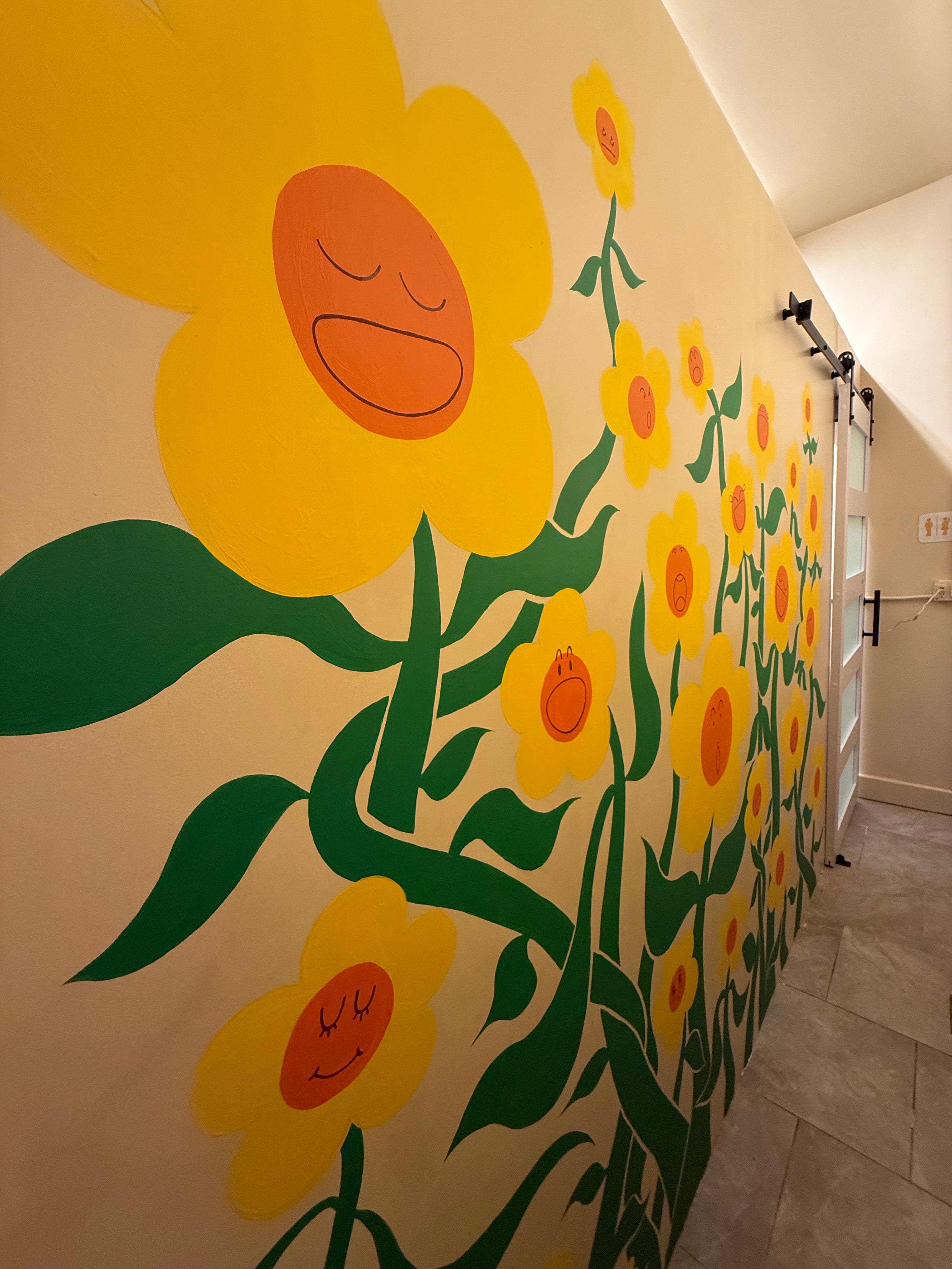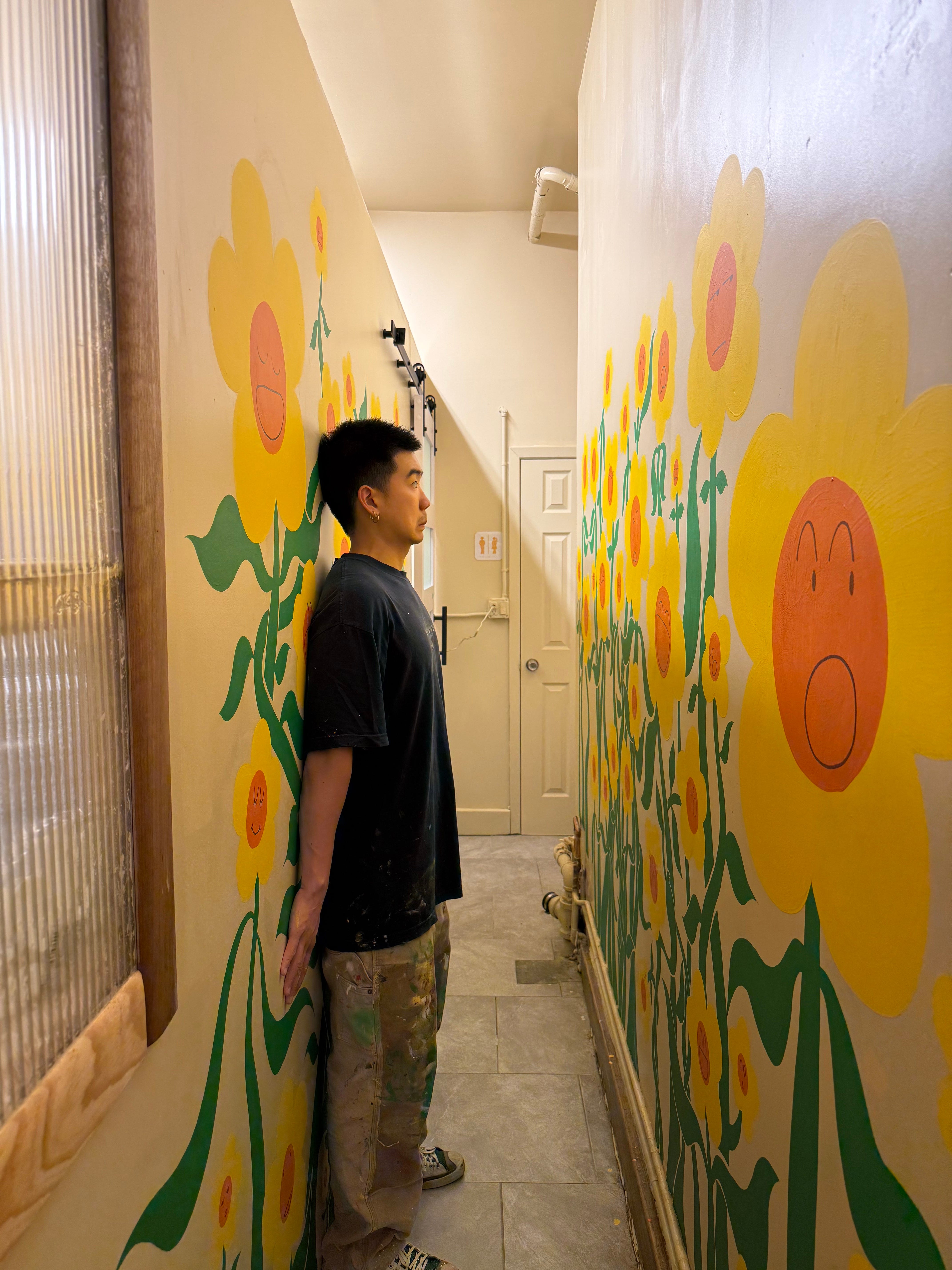 Before I left for China, I finished up my second mural! It was an indoor hallway mural, located in the back of a matcha dessert cafe called Himawari. My last viral mural video attracted the owner’s attention, they commissioned me, and I quickly obliged because I wanted to impress my sisters and my matcha loving friends (I don’t care for matcha much myself).