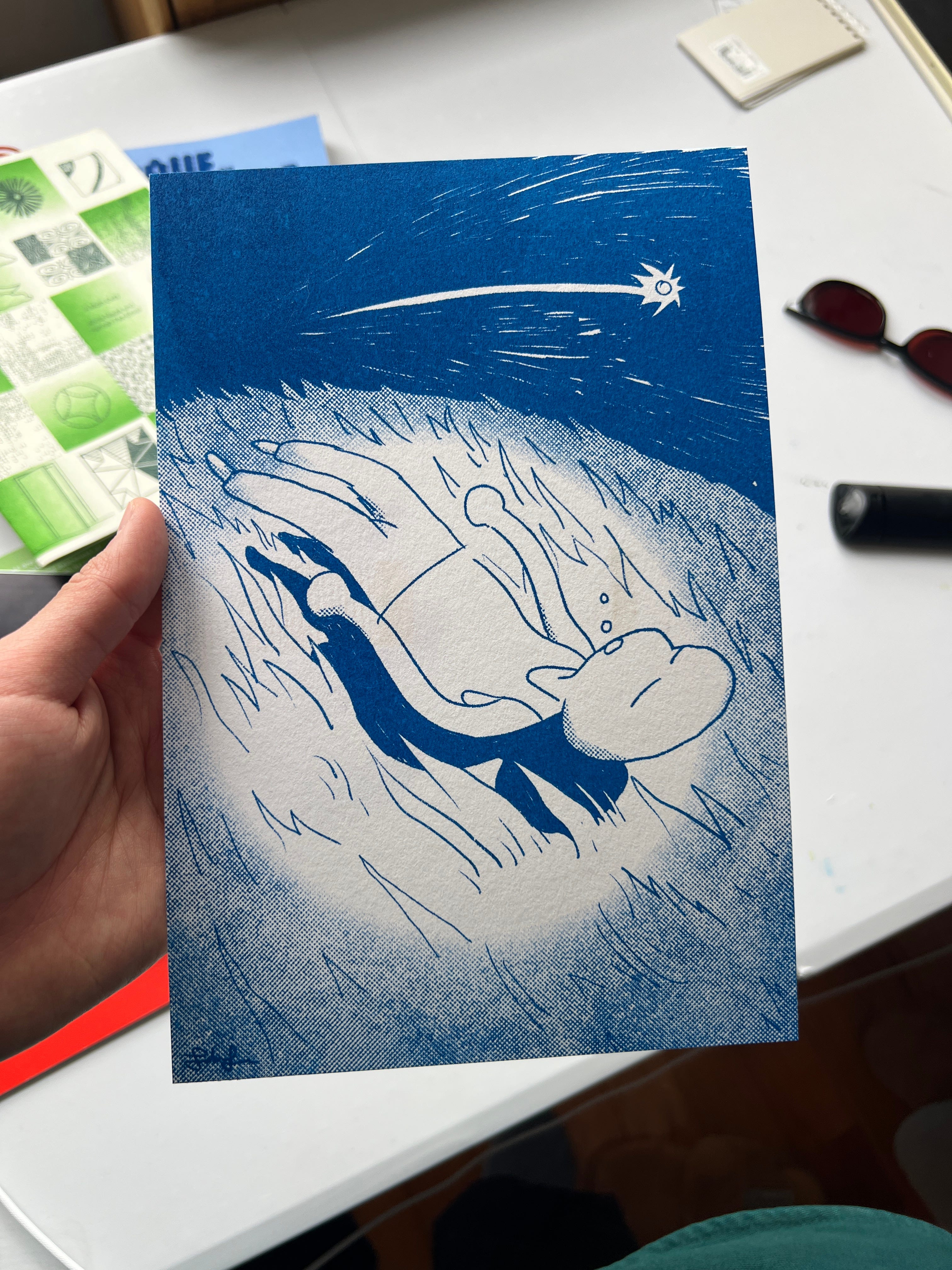 It was magical. I had always wanted to get involved in printmaking, especially RISO, but felt intimidated by the challenge of learning a new medium. Fortunately, my amazing friend Victoria connected me with Pau and Felize at Bad Student and they reached out to collaborate with me!!! WHAT AN HONOR!!!